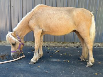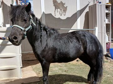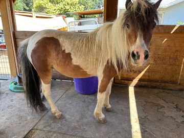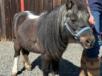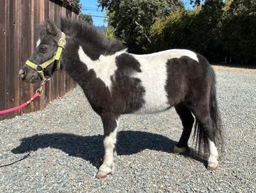 Our Minis are not adopted as companions to large horses as they can be easily injured by a larger horse.